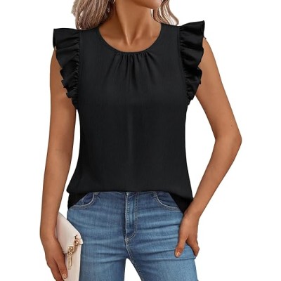 Womens Dressy Casual Blouses Cap Ruffle Sleeve Summer Tops Business Work T Shirts Basic Pleated Tunic 2025