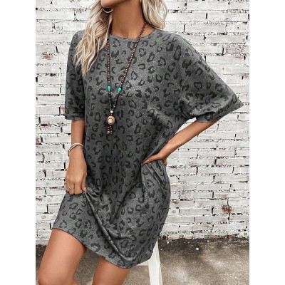 Women's Dress Leopard Print Drop Shoulder Tee Dress | Casual Half Sleeve Short Dress with Pocket Dress IPADSA(X-Large)