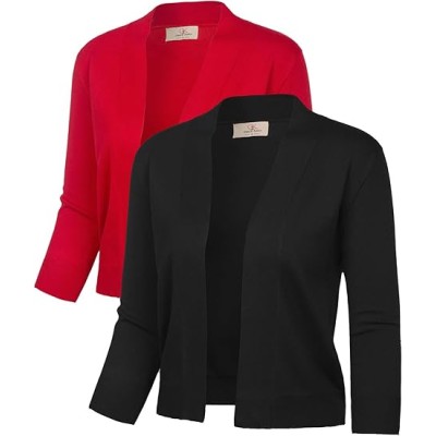 Women 2 Pack 3/4 Sleeve Cardigan Sweater Cropped Shrug for Dress Tops S-2XL