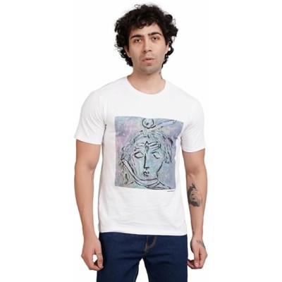 Front Printed Lord Shiva Half Sleeve Men and Women Cotton T Shirt(S09)