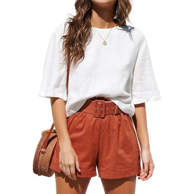 Cropped Linen Tops for Women Trendy Crop Tops Oversized Half Sleeve Shirts Cute Summer Outfits Blouse 2024