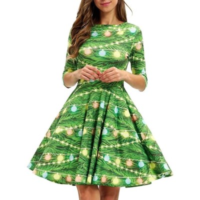 Women's 3D Print Short Sleeve Unique Casual Flared Midi Dress