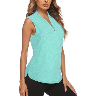 Womens Golf Shirts Sleeveless 1/4 Zip Up Moisture Wicking Tennis Polo Tank Tops M-3XL