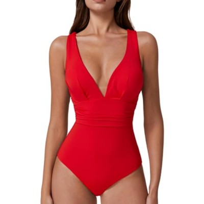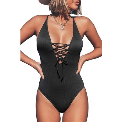 Women Swimsuit One Piece Bathing Suit Deep V Neck Crisscross Back Adjustable Strap