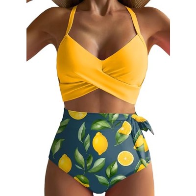 Women's High Waisted Floral Bikini Sets Swimsuit Suit for Women 2025 Tummy Control Bathing Suit Swimwear for Summer