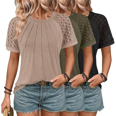 3 Pack Women's T Shirts, Short Sleeve Summer Tops 2025 Spring Trendy Lace Blouses Business Casual Clothes