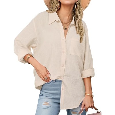Womens Button Down Shirts Long Sleeve Cotton Gauze Tops Casual Collared Blouses Loose Fit