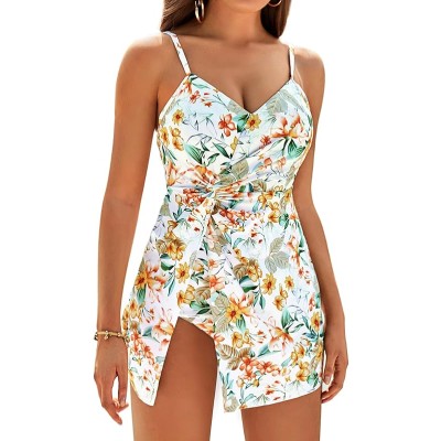 Women's One Piece Swim Dress V Neck Tummy Control Swimsuit Vacation Beachwear Bathing Suit