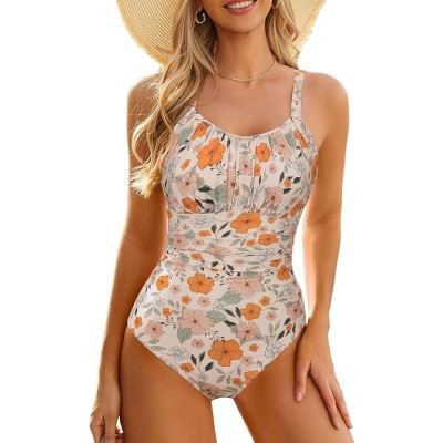 Tummy Control One Piece Swimsuit for Women Vintage Bathing Suits Ruched Swimwear