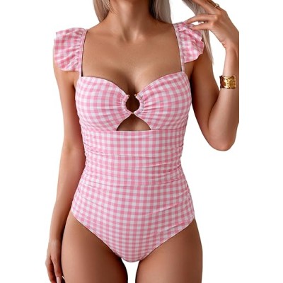 Women's One Piece Swimsuit Tummy Control Bathing Suit Ruffle Cutout Slimming Swimwear