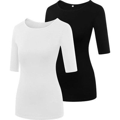 2 Pcs Women's Half Sleeve T Shirt Women Basic Round Neck Tops Womens 1/2 Sleeve Crewneck T Shirt Tops Stretchy Tees