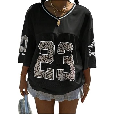 Jersey Shirts for Women Y2k Oversized Graphic Tees V Neck Half Sleeve Cute Soccer Streetwear Tops