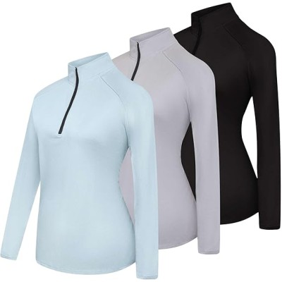 3 Pack: Womens Dry-Fit Long Sleeve Quarter Zip & Full Zip Up Hoodie Workout Jacket (Available in Plus)
