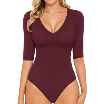 Half Sleeve Bodysuit V Neck Bodysuit Shirts for Women