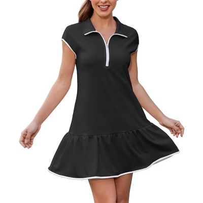 Women's Half Zip Casual Dress Spring Summer Patchwork Mini Dress Colorblock Cap Sleeve Athletic Dresses for Women