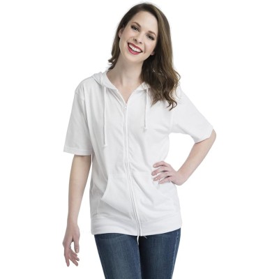 Unisex Casual Short Sleeve Zip Hoodie, Lightweight Jersey Zip Up Hoodie for Men and Women