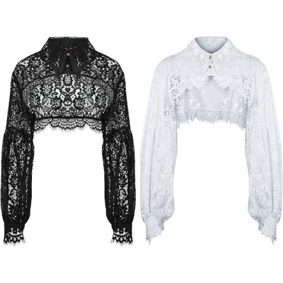 2 Pack Fake Collar Detachable Dickey Blouse Sun Protection Lace Half Shirt Blouse Flower Embroidery False Collar Long Lantern