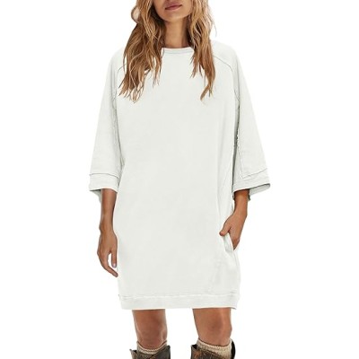 Womens Tunic Sweatshirt Dress Oversized Long Sweatshirts Crewneck Half Sleeve Pullover Tops Spring Outfits