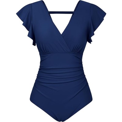 Womens One Piece Swimsuits Tummy Control 2025 V Neck Wrap Bathing Suits Ruched Ruffle Slimming Swimwear