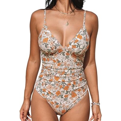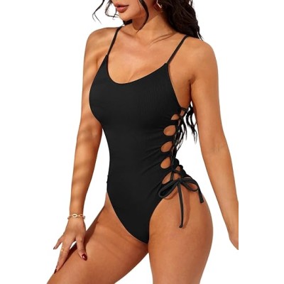 Women's One Piece Swimsuits Tummy Control Ruched Push Up Bathing Suit Tie Back Slimming Swimwear