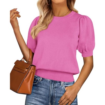 Womens Tops Spring 2025 Summer Puff Short Sleeve Sweater Crewneck Knit Work Blouses Dressy Casual Trendy Shirts