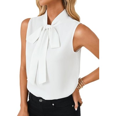 Women's Elegant Bow Tie Mock Neck Sleeveless Blouse Office Workwear Shirt Top