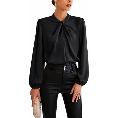 Women's Long Sleeve Shirts Mock Neck Casual Satin Blouse Tops for Business Office Work